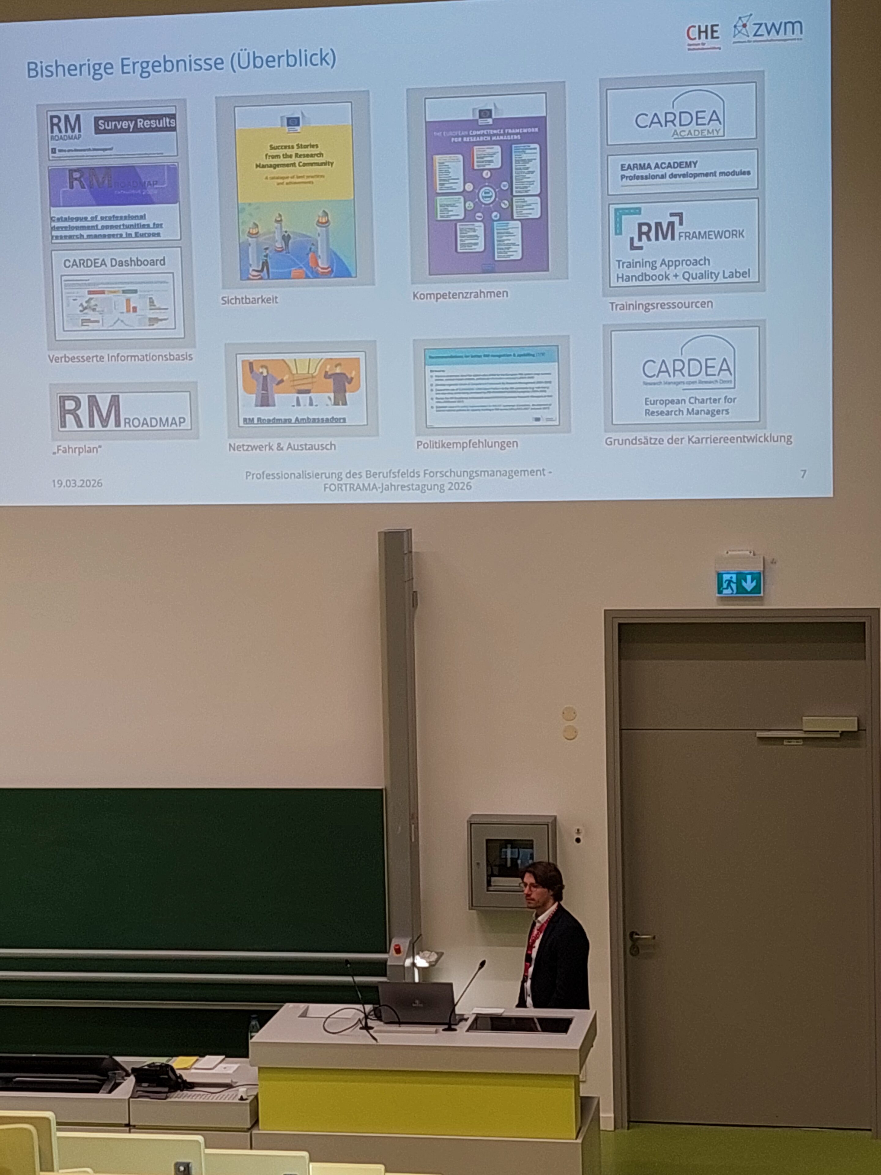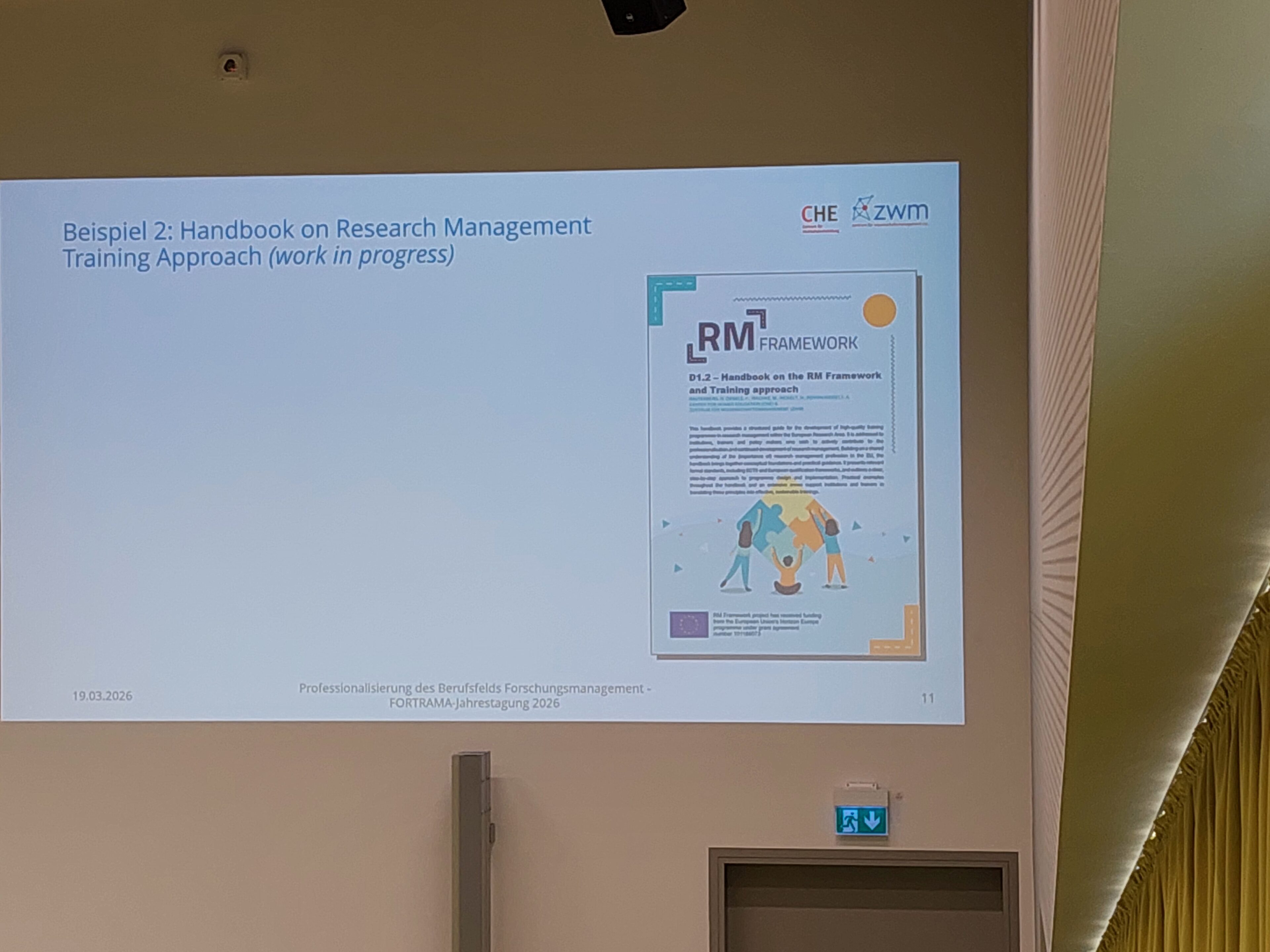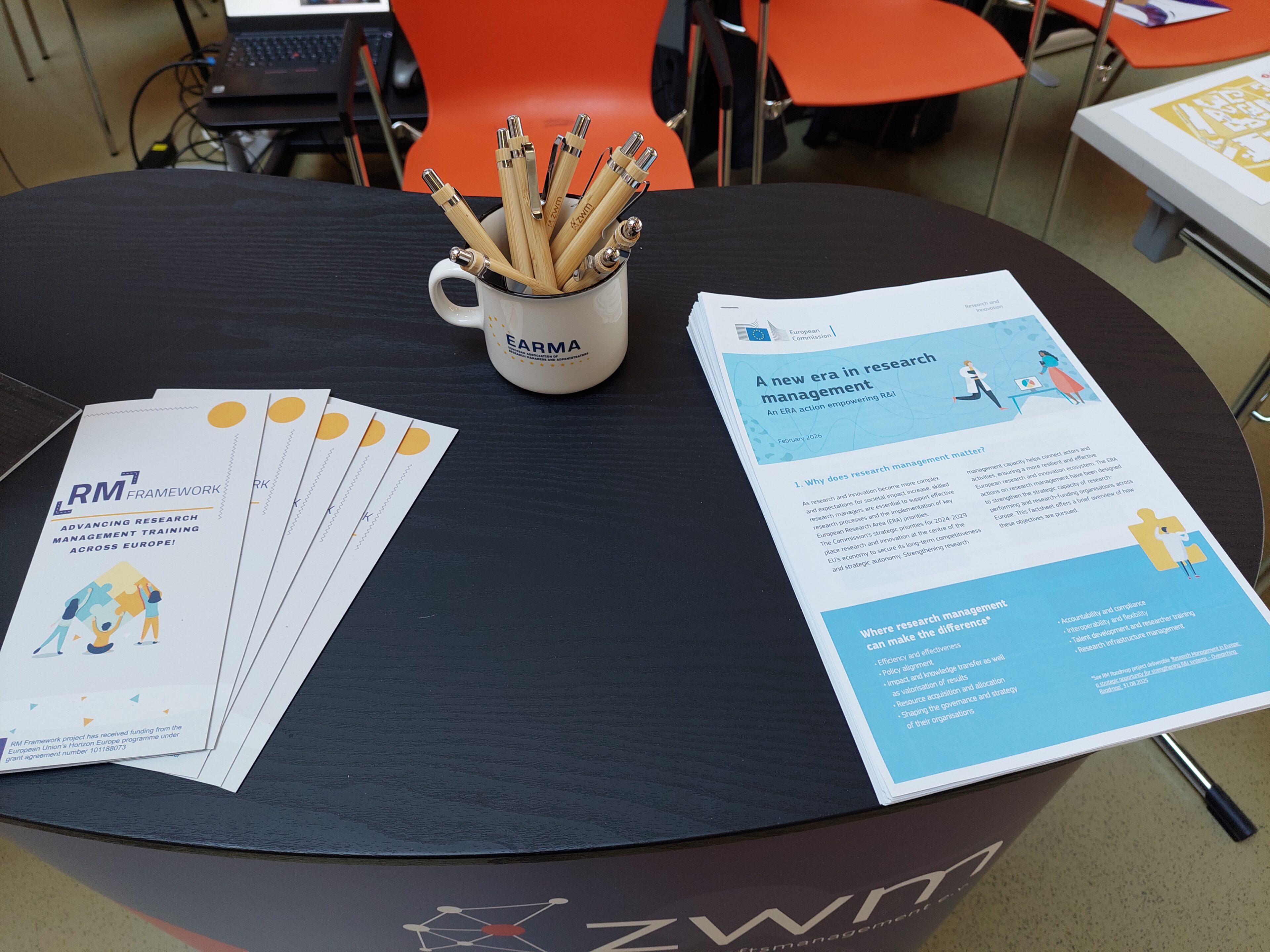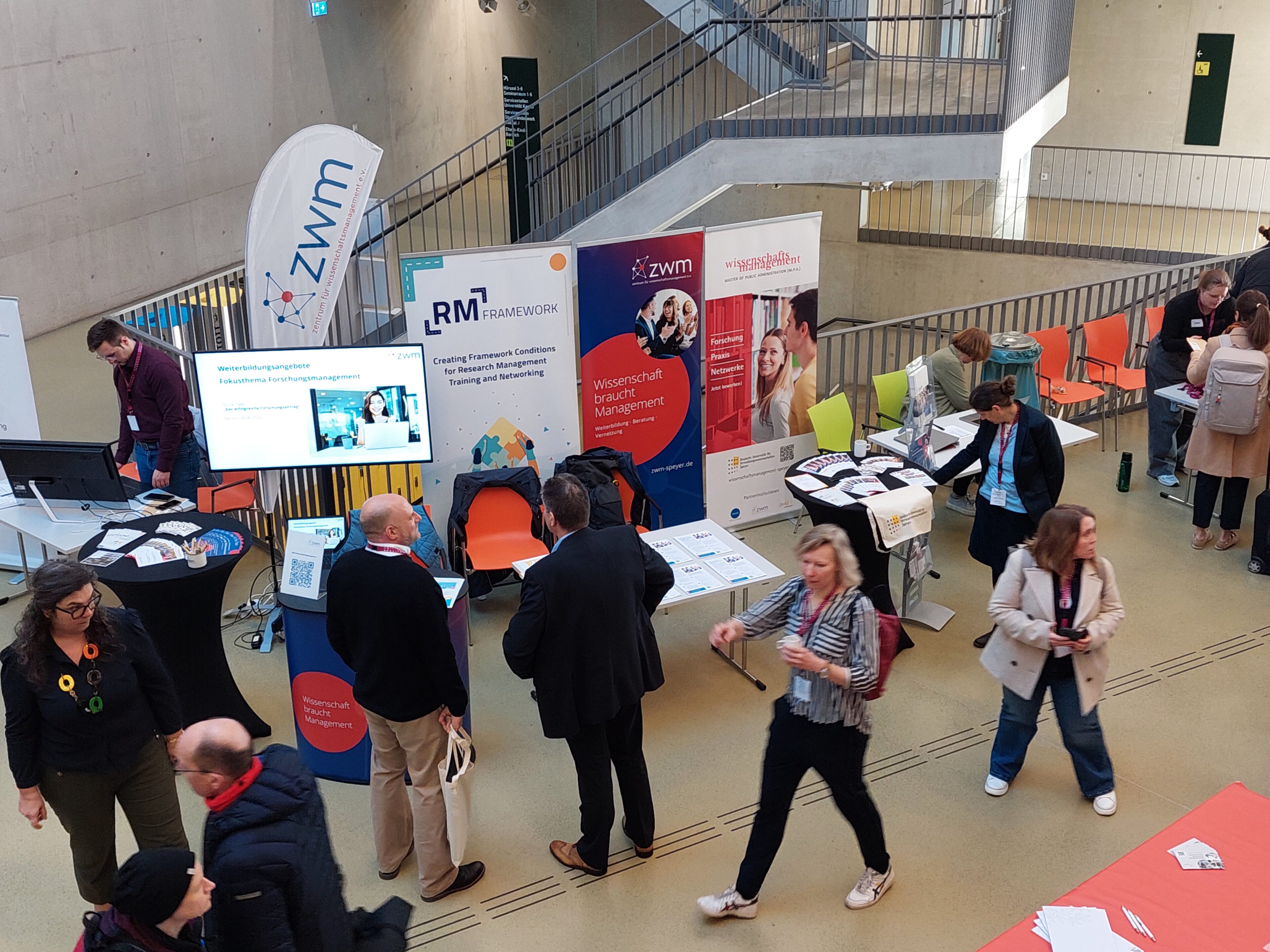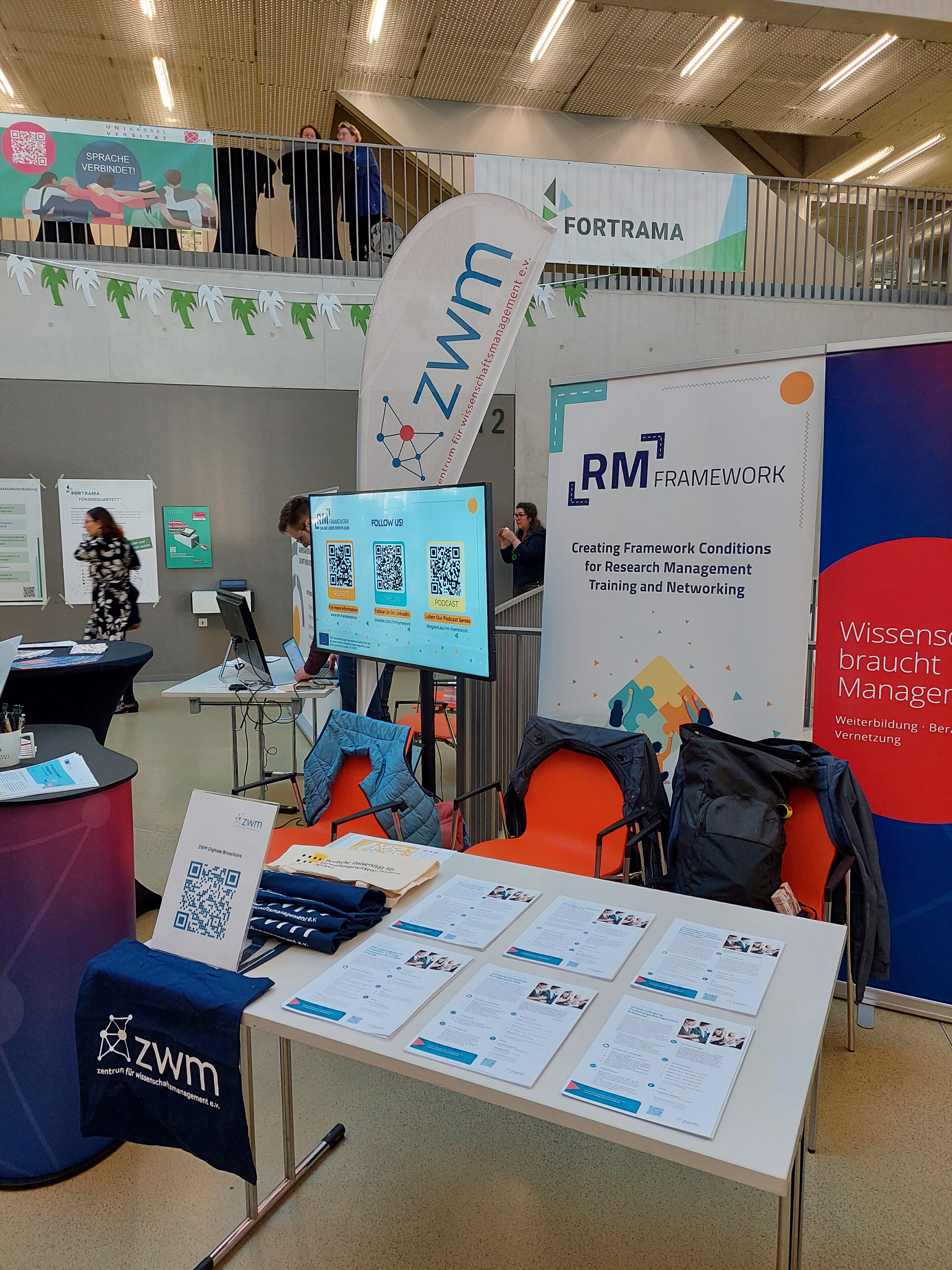 Vielen Dank auch für die interessanten Gespräche und den Austausch mit so vielen TagungsteilnehmerInnen an unserem Infostand. Zusammen mit dem M.P.A.-Studiengang „Wissenschaftsmanagement“ der Universität Speyer stellten wir hier neue Formate und Themen vor, die genau auf die Bedarfe von ForschungsmanagerInnen abgestimmt sind. Neben unseren Angeboten im Weiterbildungsbereich ging es aber auch um das EU-geförderte Projekt RM Framework (RM Framework Website), in dem wir als Partner aktiv mitarbeiten. Die Fortrama-Jahrestagung bot uns den idealen Rahmen, um das Projekt der Forschungsmanagement-Community in Deutschland vorzustellen.