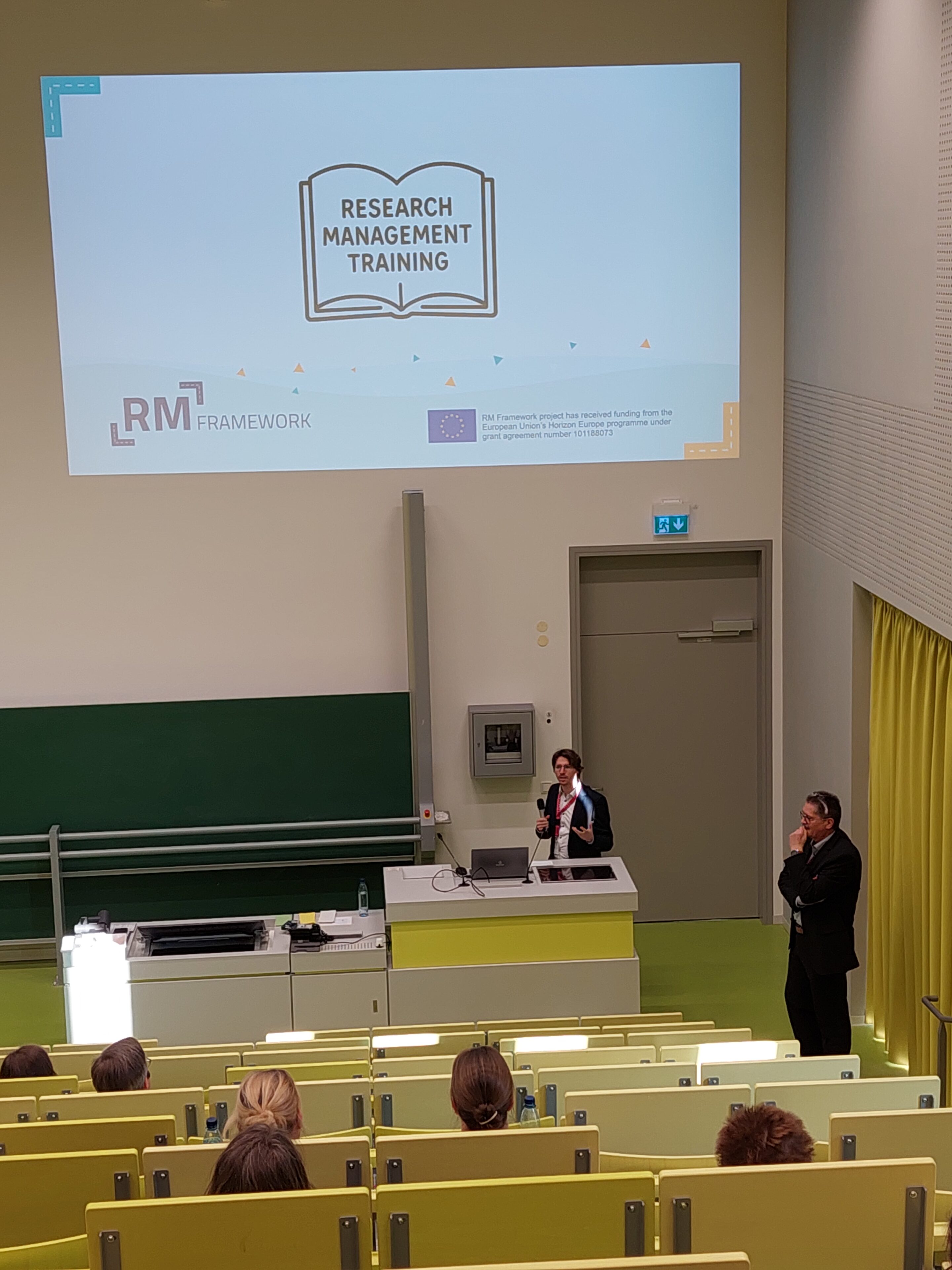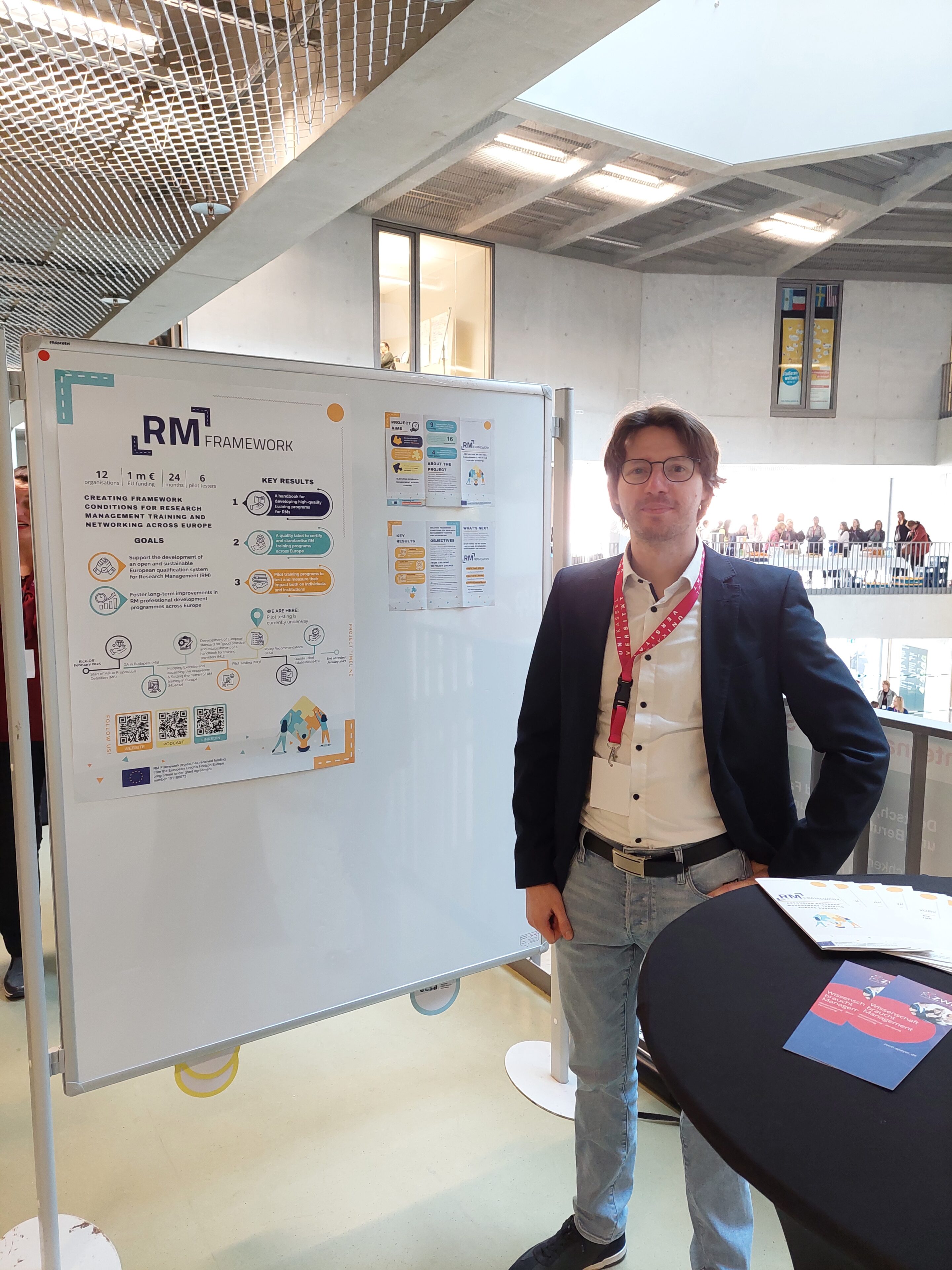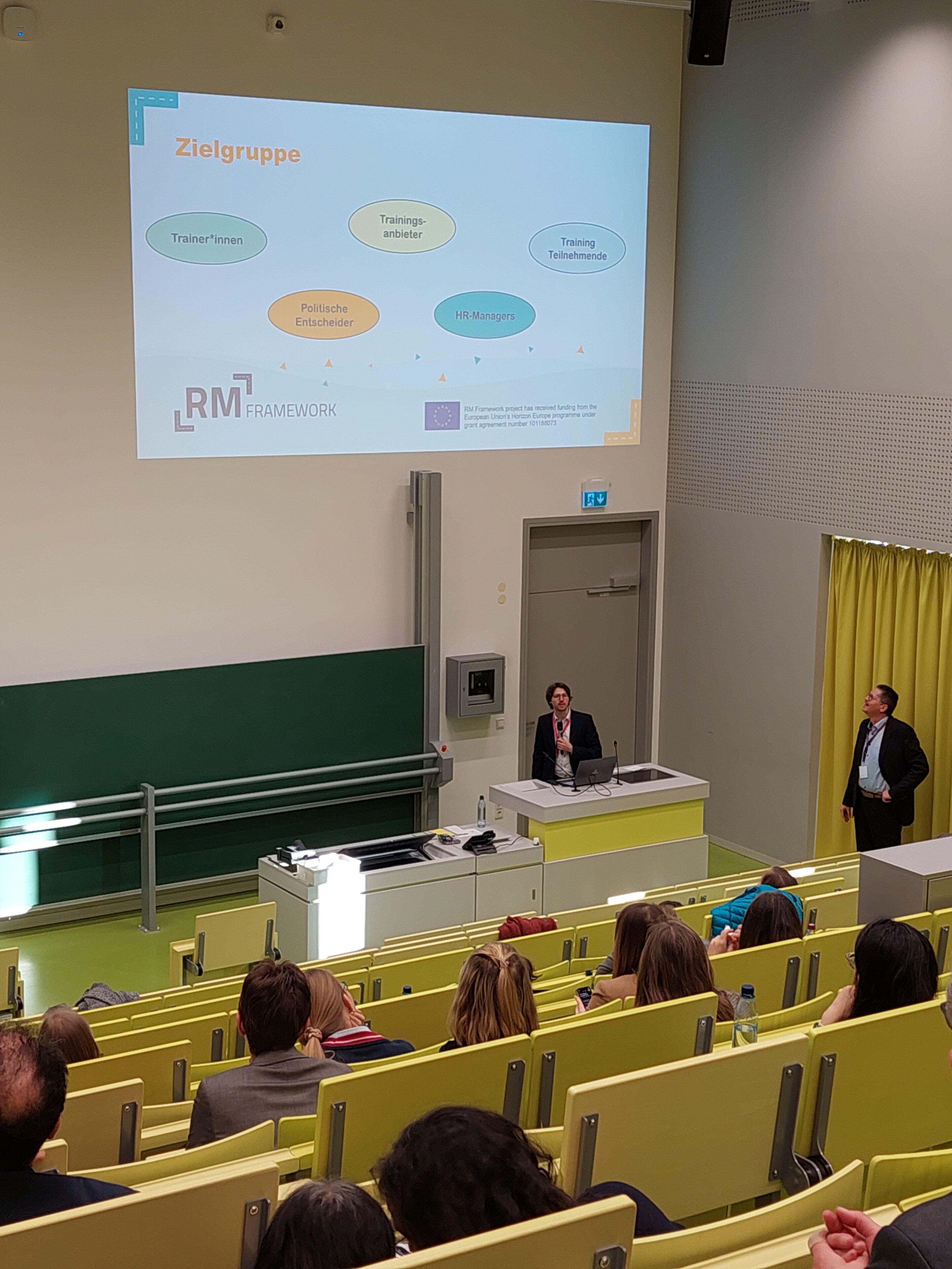 Gemeinsam mit Niklas Rauterberg vom CHE erläuterte Henning Rickelt das Konzept und die Entstehung des neuen Handbuchs für die Aus- und Weiterbildung von ForschungsmanagerInnen in Europa. Mehr als 50 Interessierte ließen sich in unserer Session in die Ergebnisse und den derzeitigen Stand des Projektes einführen (Link zur Präsentation). Darüber hinaus konnten wir RM Framework auch in der Poster-Session der Tagung präsentieren.